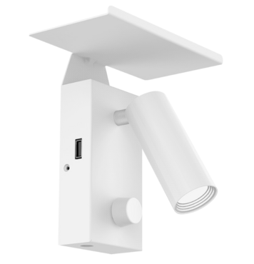 Интерьерный светильник с компактной конструкцией, камерным освещением и двумя типами физической регулировки света. Оба типа имеют внешний адаптер 12В 1.5A с функцией зарядки USB. Два простых способа настенного монтажа. Вариант 1: установка светильника в кронштейн с полкой в стену, светильник может быть непосредственно вставлен в скобку. Вариант 2: установка со стандартным кронштейном с помощью винтов. Диммирование осуществляется с помощью регулятора на передней стороне корпуса.