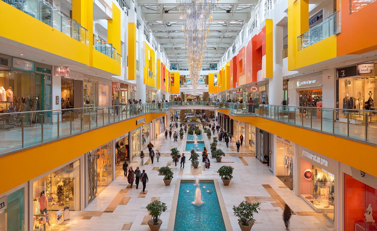 Холл торгового центра должен подсвечиваться не только в соответствии с нормами, но и создавать яркий индивидуальный концептуальный образ этого ТЦ. Общее освещение может быть дизайнерским, но не ярким, чтобы не отвлекать внимание покупателей от самих торговых точек.