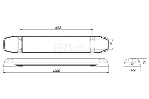 Габаритные размеры светильника (ДxШxВ), мм 1000x160x65