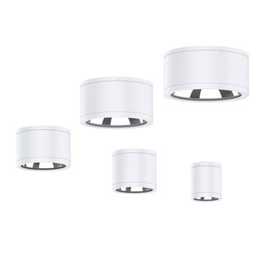 В светильнике используется закаленное стекло, которые обеспечивает лучший внешний вид, а безвинтовая поверхность корпуса светильника делает установку более удобной. Два типа светодиодов: Тип А (COB) и Тип В (SMD). Высокая пылевлагозащищенность IP65 (водонепроницаемый), уровень защиты IK08. Версия COB имеет UGR<19 с углом луча 24°, 36° или 60°. В версии SMD доступен выбор CCT: 3000K+4000K+5700K с помощью ползункового переключателя. Встроенный драйвер обеспечивает коэффициент пульсации <1. Два вида монтажа: подвесной и накладной.