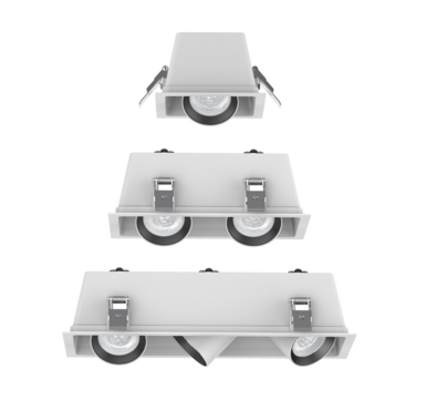 Встаиваемый даунлайт выпускается в двух вариантах: с типом светодиодов COB и со светодиодами SMD. Обладает гибкими настройками направления света. Регулируется по вертикали на 45° и в пределах 355° по горизонтальной плоскости. Количество источников света варьируется от одного до трёх. Может широко использоваться в отелях, магазинах, выставочных залах, музеях, благодаря гибким настройкам направленного света.