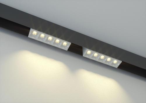 Габариты светильников серии Mag.Line.Focus разнятся от 25*57*124/224//364/484/604 мм. Мощность 6 - 30 Вт. Световая температура 3000/4000/5000 К, теплый либо нейтральный оттенок света. Имеет угол светораспределения 45°. Монтаж осуществляется на магнитный шинопровод Magnetic.Track.34.